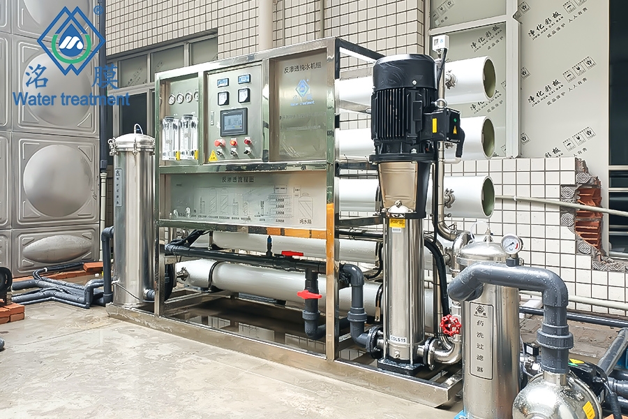 原水箱→抗氧化劑投加→介質(zhì)過濾器→吸附過濾器→阻垢劑投加→精密過濾器→RO膜→出水