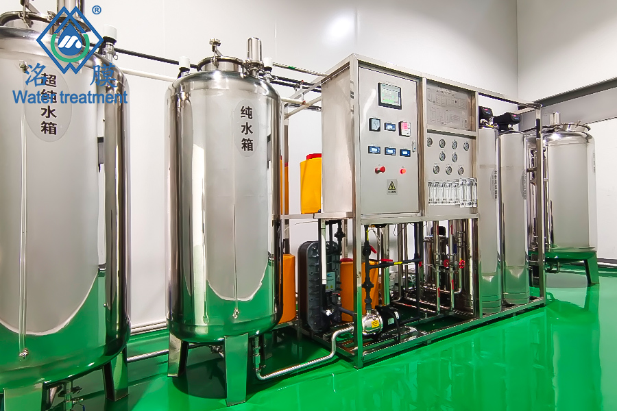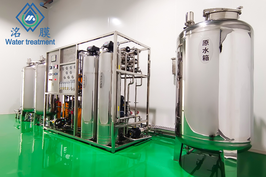 設(shè)備工藝:原水箱→石英砂→活性炭→精密過濾器→一級(jí)反滲透→二級(jí)反滲透→純水箱→EDI機(jī)組→超純水箱→精密過濾器→變頻供水