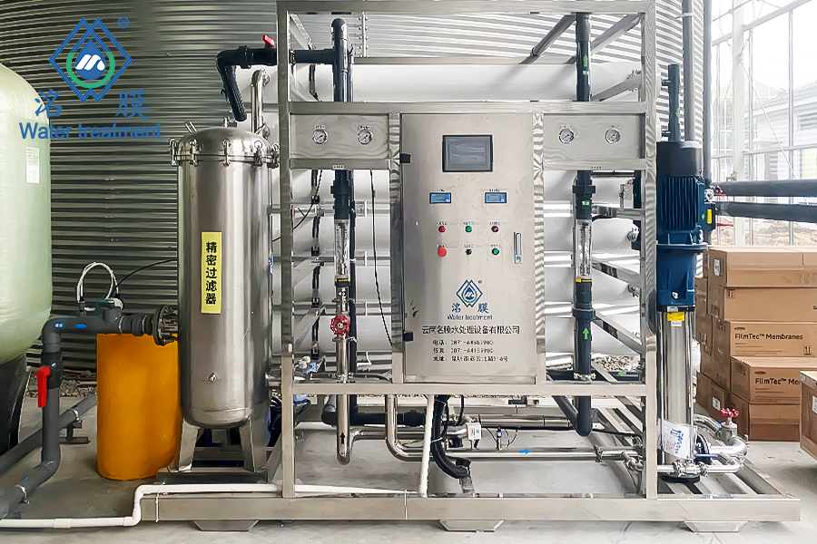 原水:自來水處理用途:噴霧灌溉處理工藝:石英砂→活性炭→精密過濾器→反滲透膜組處理量:12T/H