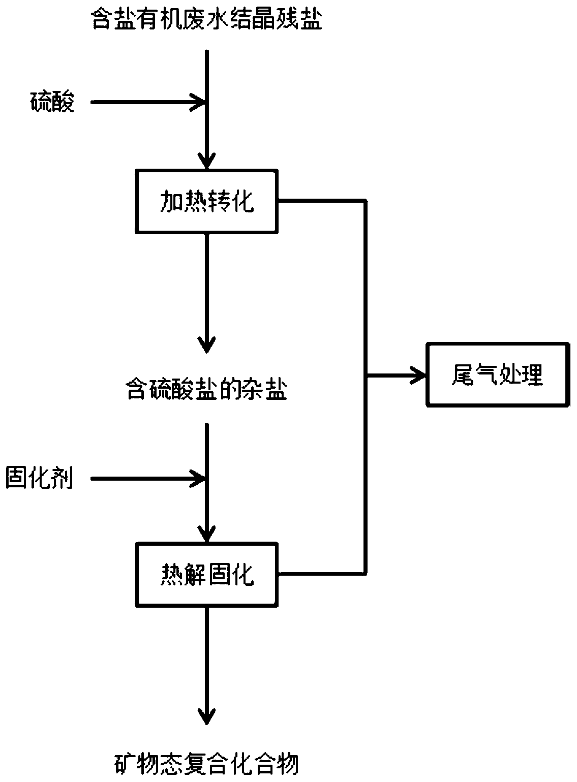 本發(fā)明涉及一種含鹽有機(jī)廢水結(jié)晶殘鹽的處理方法及其用途。該處理方法包括以下步驟:(1)將含鹽有機(jī)廢水結(jié)晶殘鹽與硫酸混合加熱,使得所述結(jié)晶殘鹽中的無(wú)機(jī)鹽轉(zhuǎn)化成硫酸鹽,得到