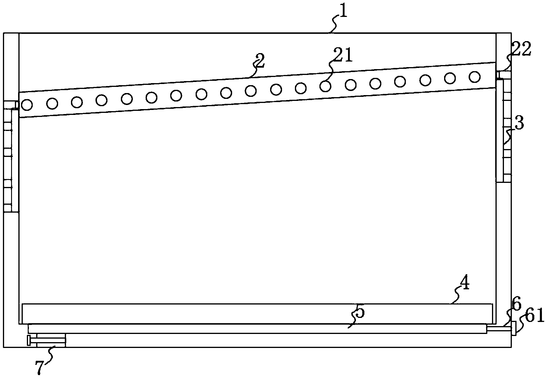 本實(shí)用新型公開了一種工業(yè)污水處理用斜管沉淀池,包括沉淀池本體,所述沉淀池本體左右側(cè)壁均開有豎槽,所述豎槽內(nèi)腔左右兩端均開有出水孔,所述豎槽內(nèi)腔外端壁開有插孔,所述