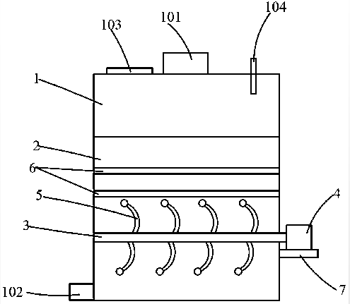 生活污水處理 :本申請(qǐng)公開了一種用于污水處理的預(yù)處理箱體,包括箱體,箱體的頂部設(shè)有進(jìn)水口,箱體的底部設(shè)有出水口,箱體內(nèi)設(shè)有過濾板,濾板截面呈弧形,箱體內(nèi)設(shè)有攪拌軸,