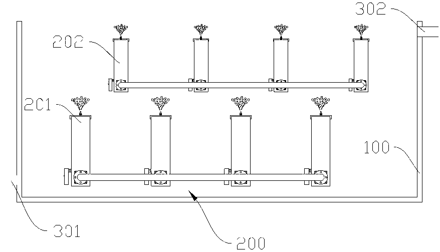 污水設(shè)備安裝 :本發(fā)明公開了一種高效曝氣池,包括池體、曝氣系統(tǒng)、進(jìn)水口、出水口,其特征在于:所述曝氣系統(tǒng)為多級(jí)曝氣,至少包括設(shè)于池體底部的第一級(jí)曝氣,設(shè)于所述第一級(jí)
