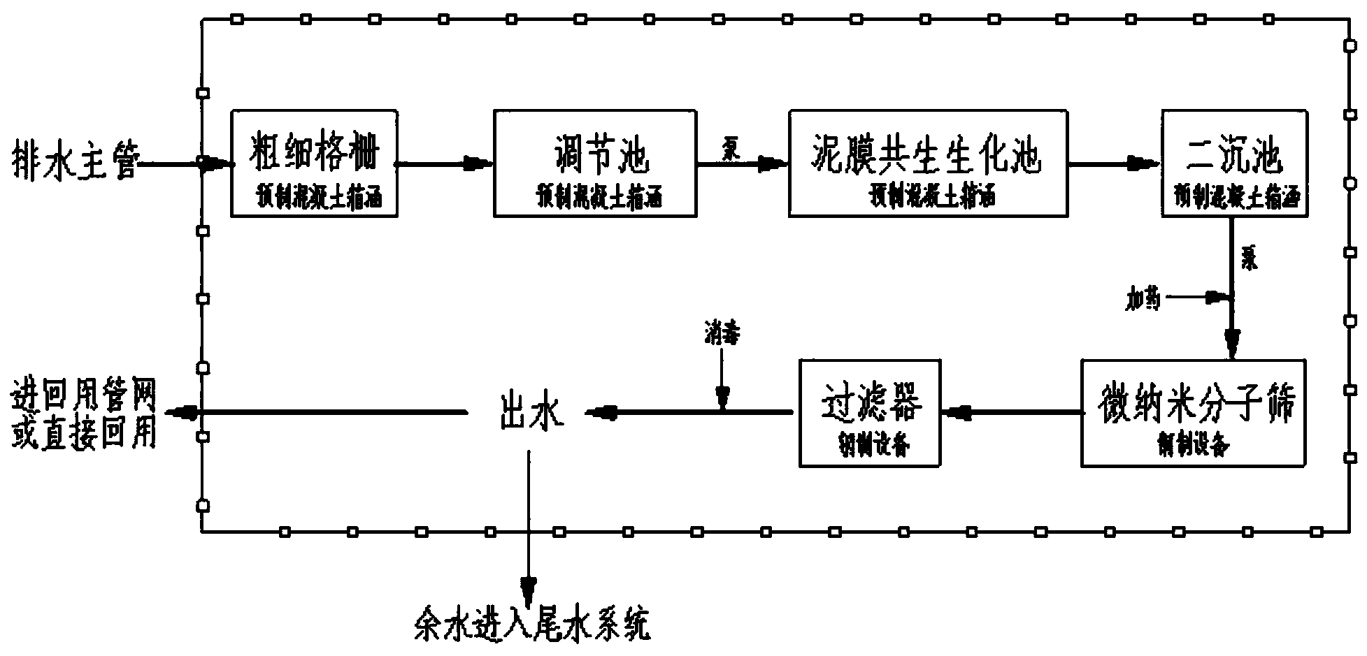 污水設(shè)備處理廠家 :一種活性炭煙氣凈化制酸廢水零排放工藝和系統(tǒng),制酸復(fù)雜污水依次通過步驟1)?步驟4)進(jìn)行處理,處理完后作為工業(yè)新水的替代物,用于燒結(jié)混料或鋼廠沖渣。步驟