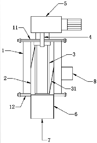 本發(fā)明一種污水處理系統(tǒng)廢水導(dǎo)入結(jié)構(gòu)公開了一種通過內(nèi)旋管和外殼管的配合將污水中垃圾隔離出,且通過輔流片將垃圾推至擋罩處,再通過導(dǎo)向殼排出至固體垃圾箱中進行存放的導(dǎo)入