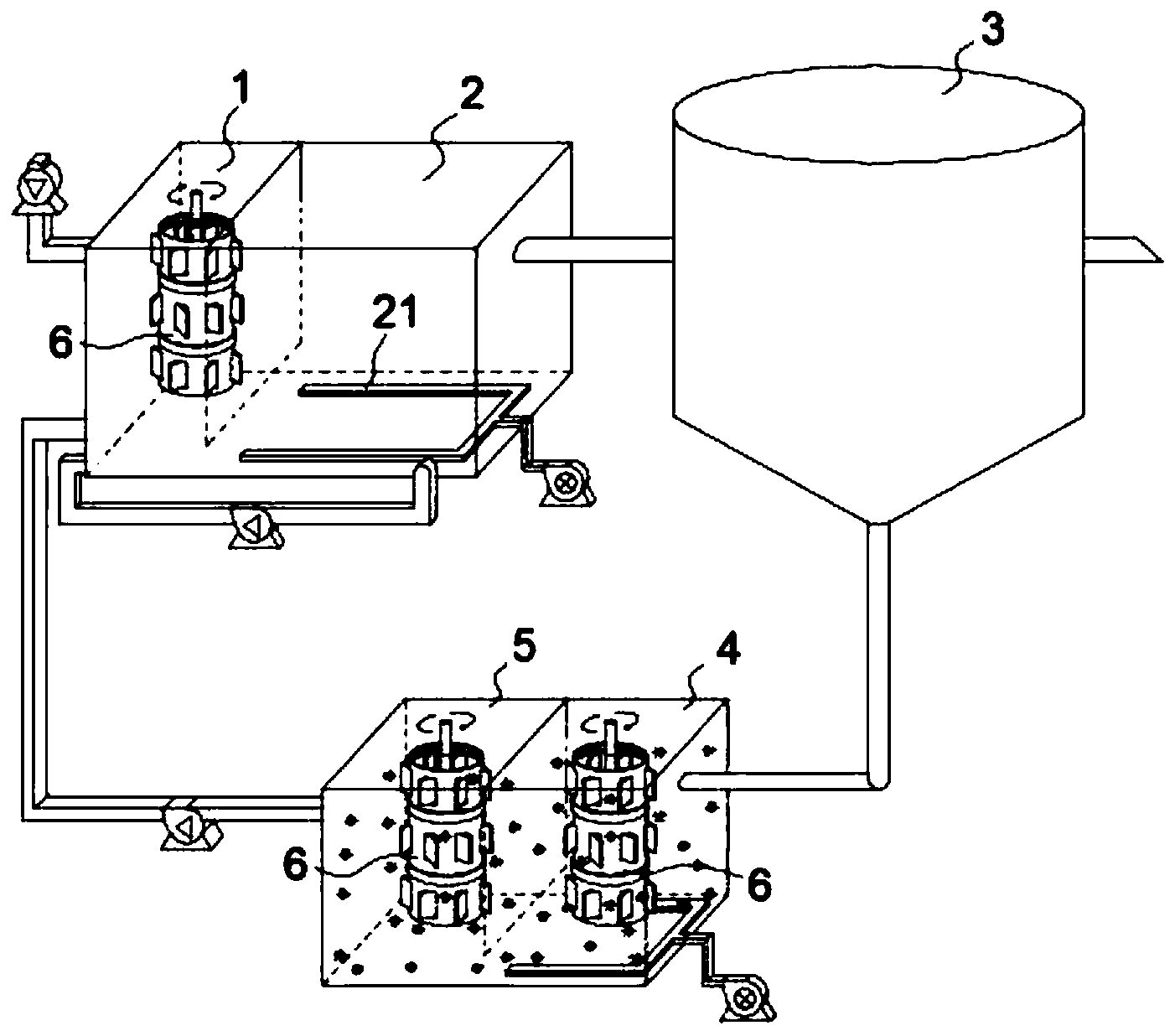 本發(fā)明公開了一種交替饑餓微氧厭氧耦合填料污泥側(cè)流原位減量強化工藝,主要包括主流生物處理系統(tǒng)和側(cè)流污泥減量系統(tǒng),主流生物處理系統(tǒng)包括缺氧池、曝氣池和沉淀池,曝氣池底