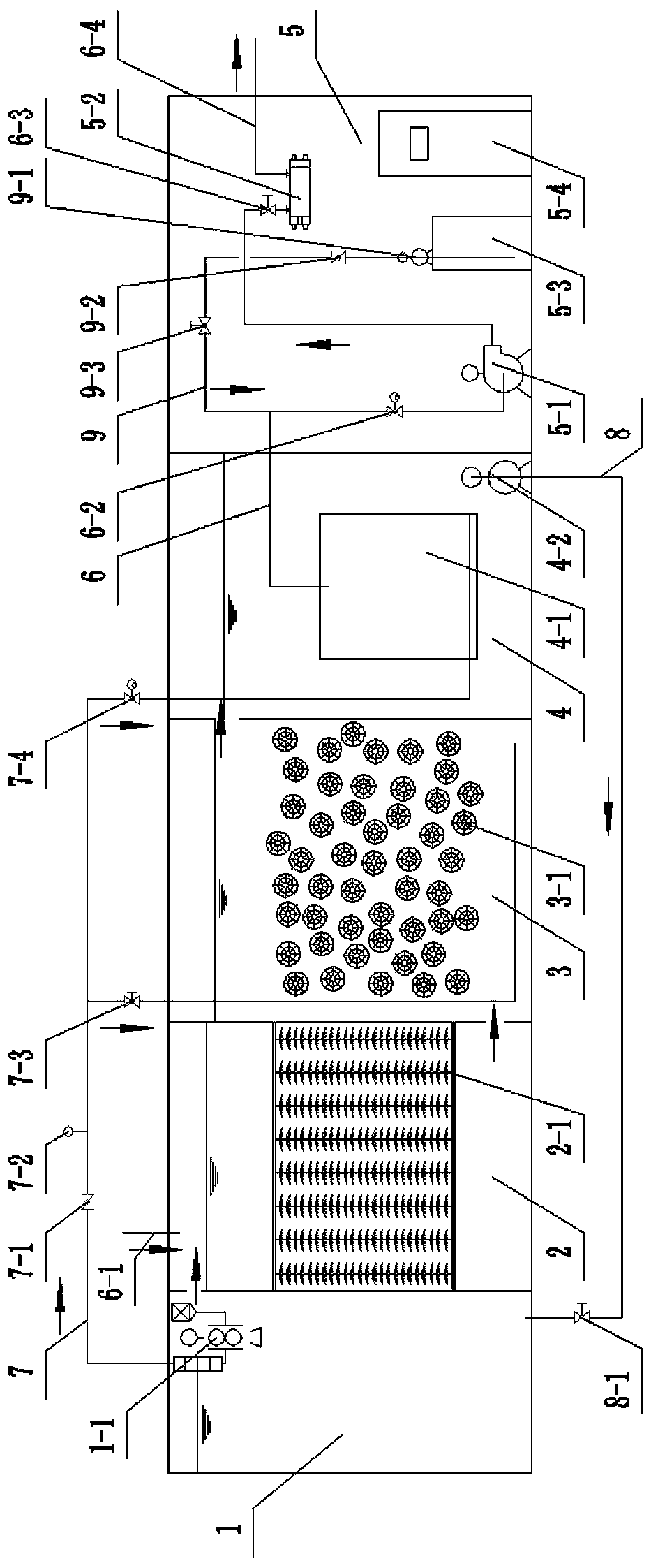 成都一體化污水處理設(shè)備 :本發(fā)明涉及一種集成式智能化污水處理裝置及方法,水解酸化池頂部接裝置進水管,MBR膜池內(nèi)的膜組件上部接污水管路,污水管路分兩路,一路經(jīng)抽吸泵進水