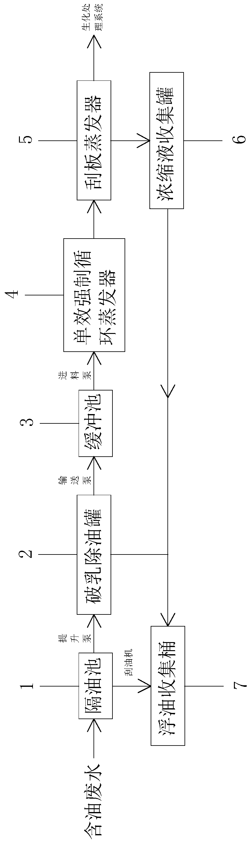 一種含油廢水處理裝置及其工藝,該種含油廢水處理裝置及其工藝包括以下步驟:(1)將隔油池中分離后廢水泵入到破乳除油罐;(2)加入破乳劑H2SO4進(jìn)行破乳反應(yīng),破乳后下層廢水泵入緩沖
