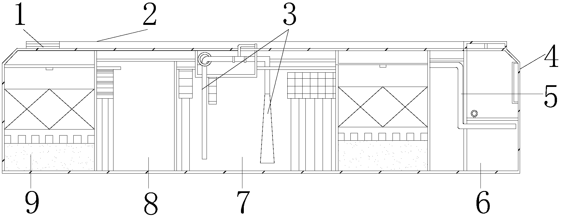 本實(shí)用新型公開了一種用于工業(yè)廢水處理的污水處理器,其結(jié)構(gòu)包括升降械座、上蓋板、循環(huán)水管、箱體、排管、消毒池、接觸氧化池、缺氧池、初沉室,所述升降械座采用過渡配合方
