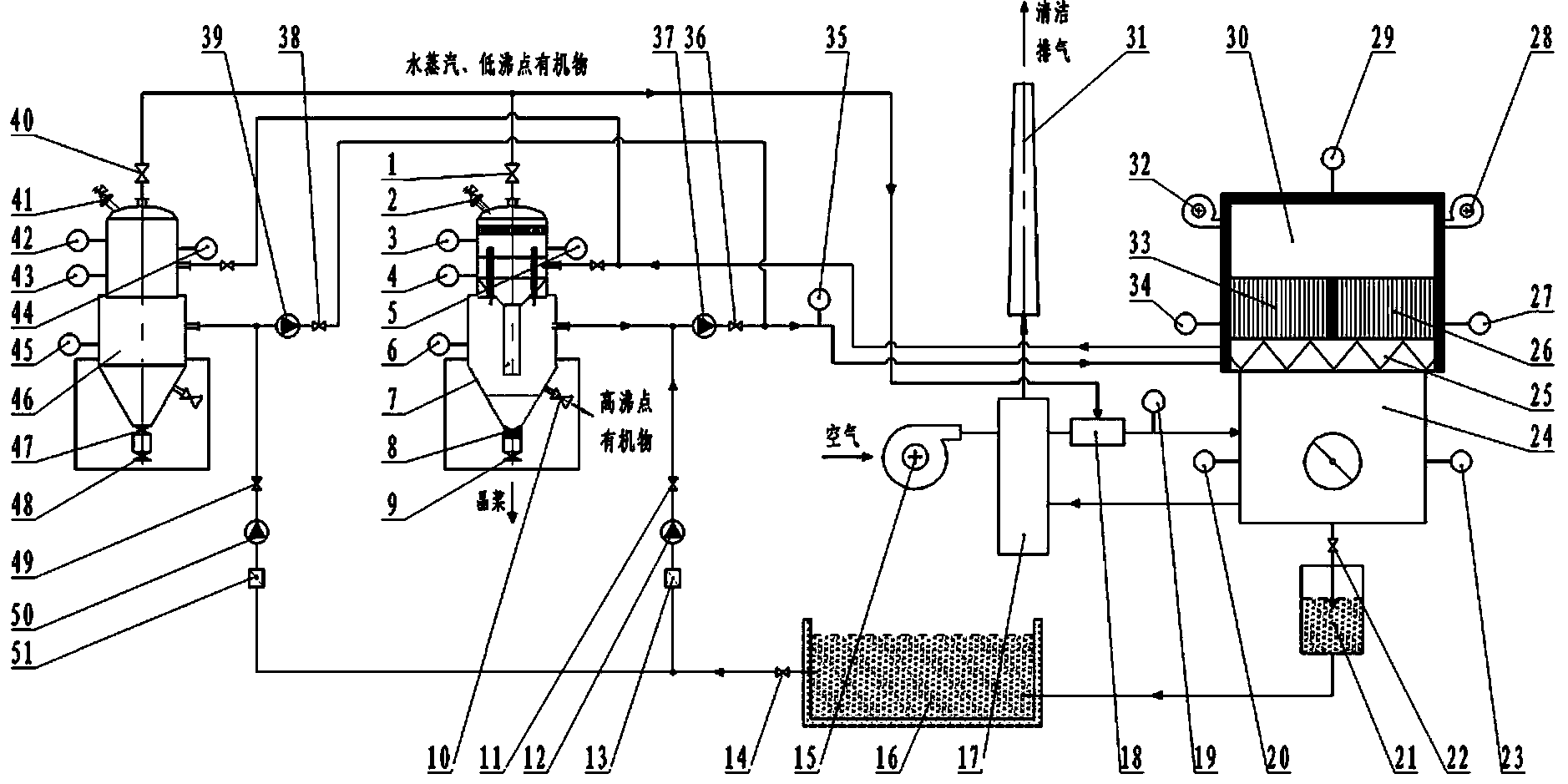 本發(fā)明提到的一種高鹽高濃含氯廢水蒸汽再循環(huán)高溫?zé)嵫趸O(shè)備與工藝,其技術(shù)方案是:氧化裝置由換向閥、換熱器、左右蓄熱室、氧化室自下而上連接安裝,構(gòu)成廢水氧化部分,共設(shè)